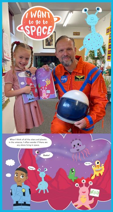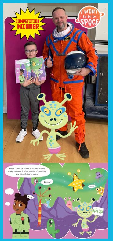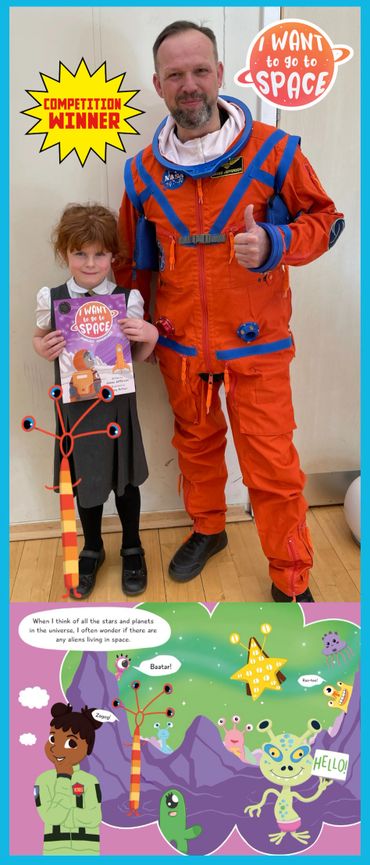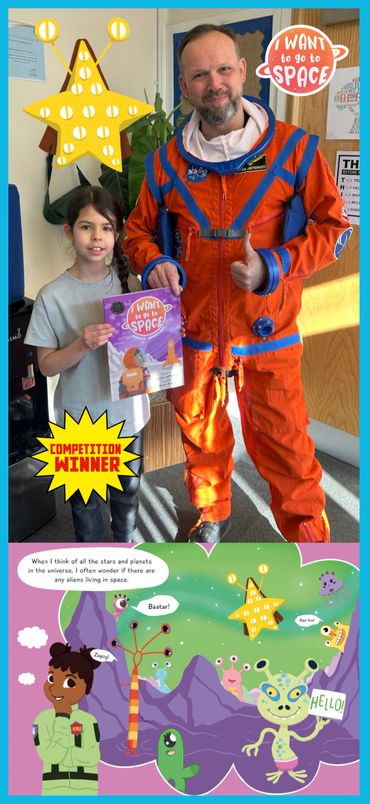 In June 2022 I released my first children's book 'I want to go to space' and in October released my 2nd book, followed by my 3rd book 'The Lost Alien' in 2023. Our space visits include reading / signing my books, talking all things space, looking at space rocks and inspiring children to work towards their goals and dreams. By the end of 2024 the 'I want to go to space' book series was completed with Jayden and Jamelia versions added.